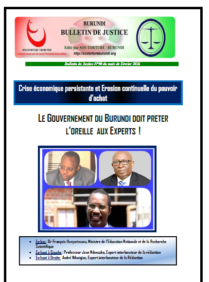 Le présent rapport de SOS-Torture Burundi couvre la période du 21 au 28 février 2026. Il documente les cas de violations des droits de l’homme commises sur le territoire burundais. Au cours de cette période, une (1) personne a été assassinée dans la province de Gitega. Le rapport mentionne également un cas d’une (1) personne... continuer à lire
